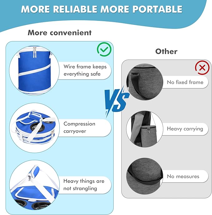 - Convenient Access: This pop-up cooler bag features a convenient hatch for quick drink access without fully unzipping the cooler. Whether you're on the golf course or enjoying outdoor activities, it helps minimize cold air loss, keeping your drinks colder for longer. The perfect round cooler or collapsible cooler, it delivers extended cooling performance, making it essential choice for collapsible coolers for travel.